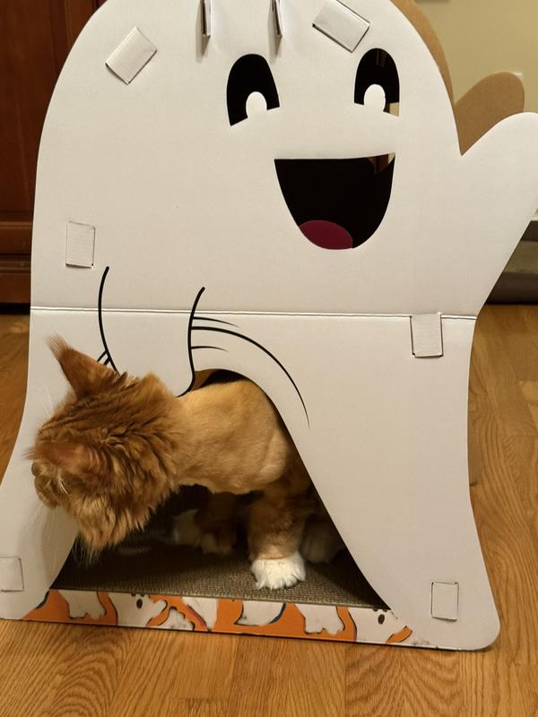 ❤️ Why This Solves the Problem: 1. Provides a cozy enclosed space that helps cats feel safe and secure 2. Built‑in scratch panels satisfy natural scratching instincts 3. Includes catnip to encourage play and exploration 4. Lightweight cardboard design is easy to assemble and move 5. Festive ghost theme adds adorable Halloween décor to any room 6. Affordable and fun enrichment for indoor cats